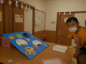 ヨーヨー釣り、射的、輪投げ、お菓子釣り、くじ引き、とたくさんのゲームを行いました!