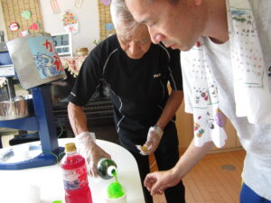 おやつにはかき氷をお好みのシロップをかけて楽しみました!