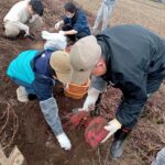 職員が土をやわらかくして、利用者様がさつまいもを掘り進めます。