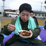 からあげがのった焼きそばが配られると皆さん待ちきれない様子で食べ進め、