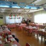前日、当日に職員で飾り付け等の準備をして会場の食堂はクリスマス一色🎄