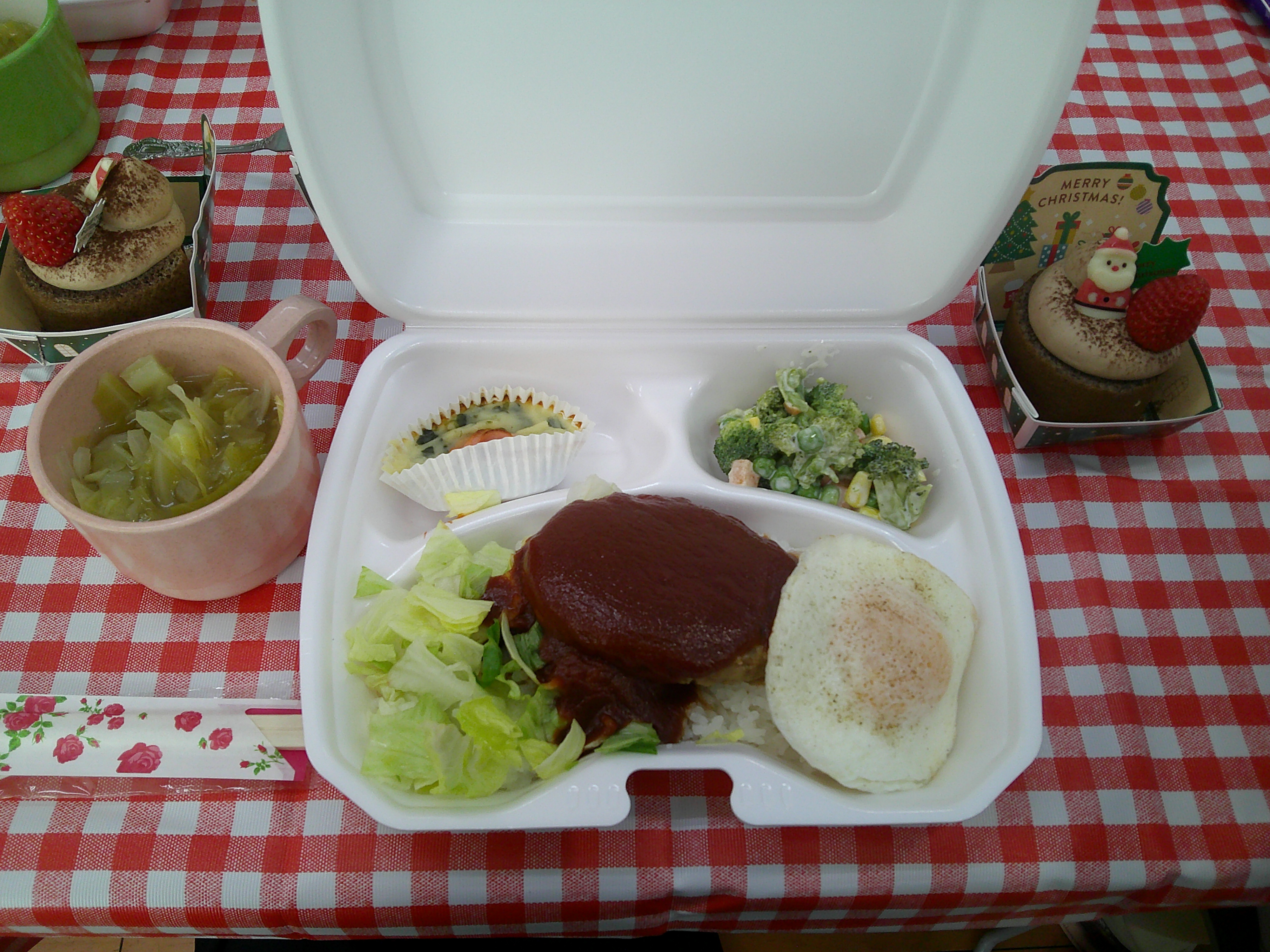 メニューはロコモコ丼・グラタン・ブロッコリーサラダ・スープ・チョコレートケーキ🍰