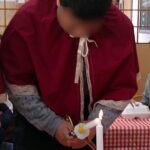 代表の利用者様が各テーブルに回ってろうそくに火をつけていきました